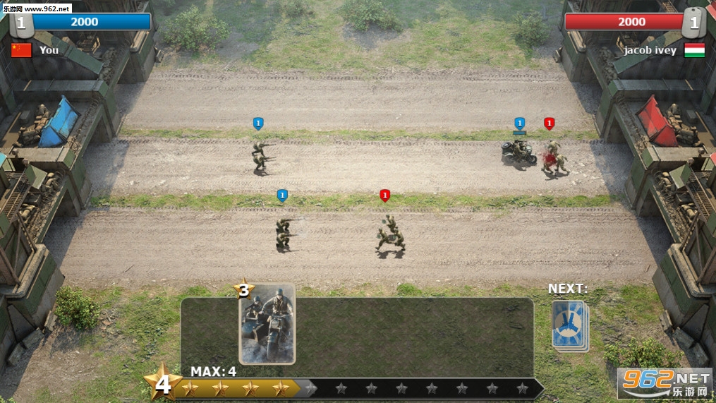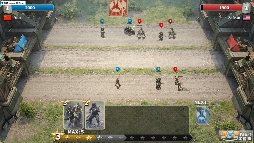 策略战略游戏,两军对垒,玩家需要不断的拍出自己的士兵去攻击对方的士兵并攻下对方的城池,不同的兵种攻击力和消耗的星星是不同的,玩家需要根据实际情况来派遣自己的队伍,喜欢的朋友可以下载试试。
