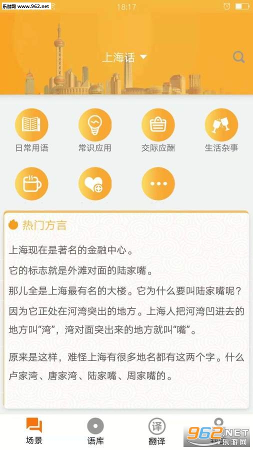 方言掌上通APP收录三种方言(关中话,陕北话,上海话)。分别收录1万句左右常用情景句子。涵盖日常用语,常识应用,交际应酬,生活杂事,兴趣爱好,文化之窗,各方面的常用句子。支持男女声真人示范音发音跟读。也支持自己发音进行学习对比。让您快速学会地道的关中话,陕北话,上海话。和本地人沟通无障碍,快速融入本地生活。