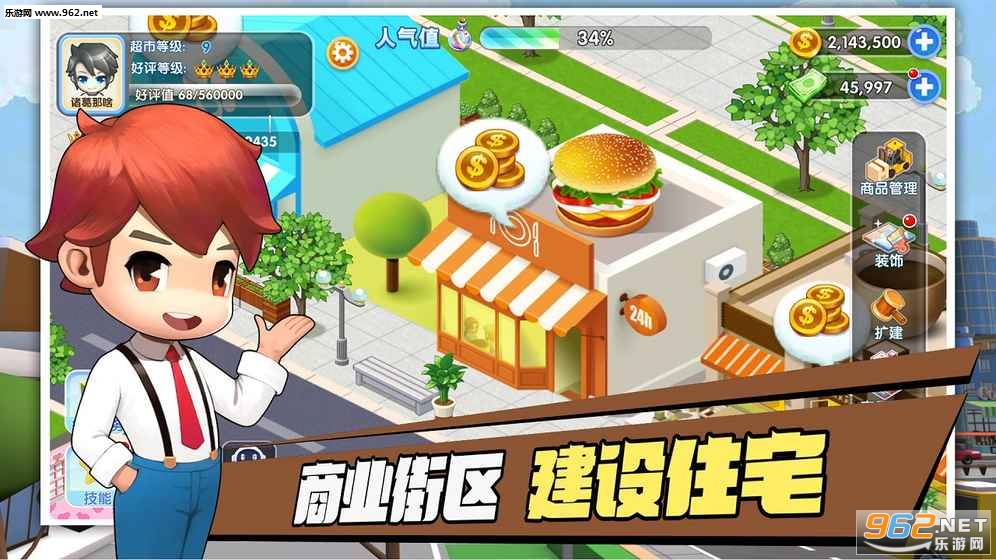《梦想超市游戏》是一款卡通风格模拟经营超市类游戏,游戏中玩家将扮演店长的角色需要凭借自己的努力打造一个最繁华的超市,游戏玩法内容丰富,多彩,玩家可以在游戏中建设住宅,经营超市,雇佣员工,还能邀请大明星,赶紧下载吧!