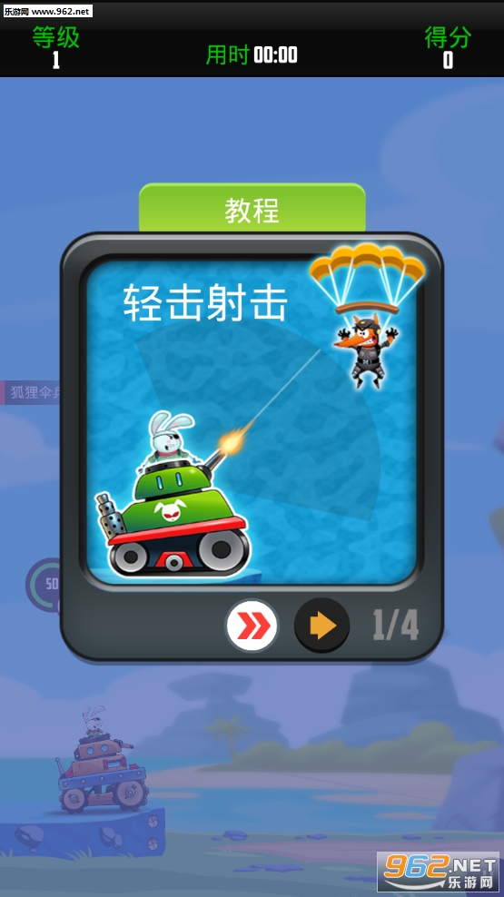 玩家们需要不停的不同角度的射击狐狸的伞兵,组织它们顺利的着陆,只要轻触屏幕就能射击了,操作还是很简单的,但是有时候会不停的冒出狐狸伞兵们来,这个时候就应接不暇了,去商店中够买更多更强力的武器来对付这些狐狸们,让你的坦克威力升级是必要的,游戏可以进行各种成就任务挑战,完成就可获得一定成就,用这些激昂历来升级的坦克战车或者购买辅助道具,你要存活下去。