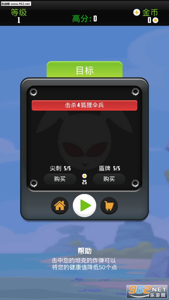 狐狸和兔子势不两立;他们的战争一直在延续;如今已经发展到了可以使用伞兵空袭的境地。竟然如此;那么兔子们也不甘示弱的开启了坦克,而你僵尸扮演兔子的存在;控制着坦克战车,将空袭的狐狸伞兵们全部击落或者而杀死就可以获得胜利。