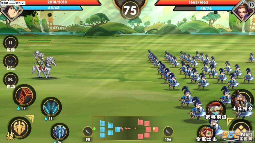 2、充分的发挥你的策略能力,多样化的对战模式,斗将,斗阵,斗兵,排兵布阵等自由运用;
