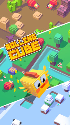 玩家控制方块左右翻滚,选择安全的路线,避开不同的危险,同时小心后方追袭的怪物!
