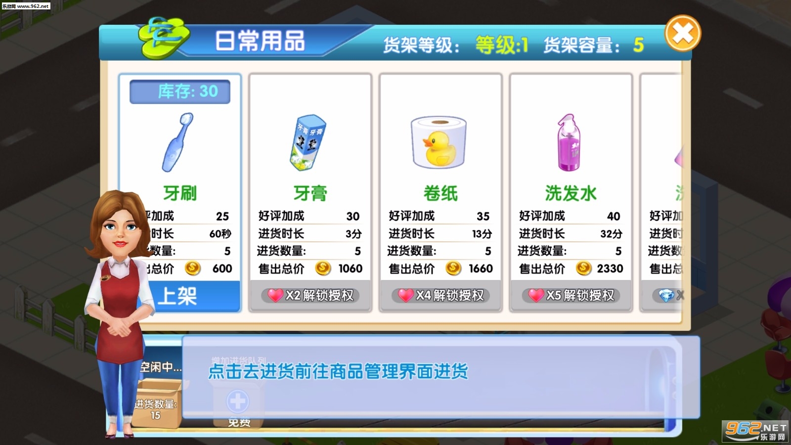 2、扩建您的货架和仓库,多卖多赚,以量取胜。