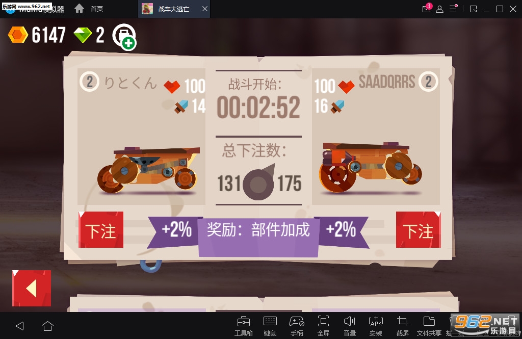 下注其他战斗机器人,分享你的战斗回放。
