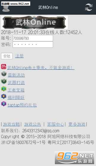 阿旭工作室荣誉出品,武林online 2G网络文字游戏,装备全靠爆、玩家线上交易、组队攻打世界BOSS、门派激战争霸,更多精彩请登录游戏自行查看。
