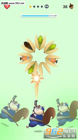 是一款动画风格的射击游戏,游戏中你需要去控制可爱的松鼠进行攻击,在这款游戏中吧所有的坚果都给消灭掉,游戏中拥有多样的关卡和游戏场景,不同的关卡中的松果数量是不同的,你需要准确的击中松果即可。