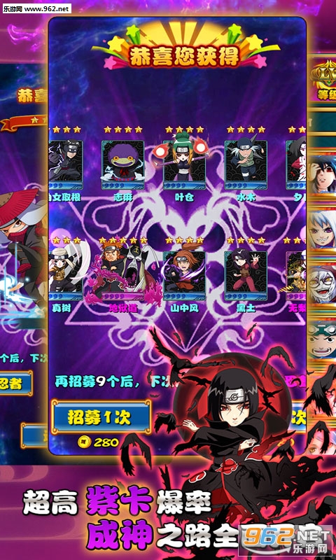 《火之忍者满V变态版》是根据日本热血人气动漫《火影忍者》改编而来的一款日漫风格策略卡牌对战类游戏。游戏集集培养、强化、竞技、夺宝等流行元素融一体,还有各种超级强力的召唤兽和尾兽可供玩家养成,感兴趣的小伙伴儿可千万不要错过这款游戏哦!