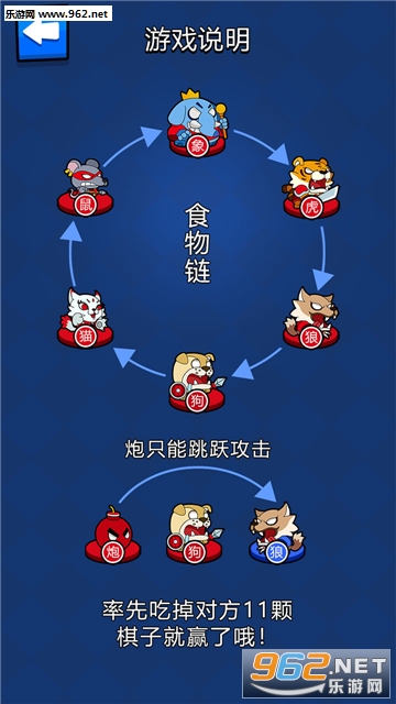 以食物链的压制为规则,加入象棋中的炮,玩法上更加灵活,而且更考验策略!