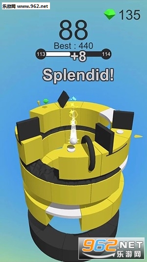 一款休闲创意型的游戏作品,不过期玩法相较来说有些肚饿,玩家在游戏中将需要控制的并不是球体,而是整个机关,球体将会自发的跳跃,而玩家需要在合适的时机将机关转动让小球顺利的击碎圆环并躲避障碍。