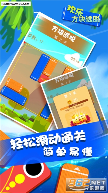 《欢乐方块逃脱安卓版》这是一款华容道玩法的益智闯关手游。玩家需要认真规划路线,尽可能用最少的时间和步数,将红色木块移动到出口。游戏上手容易,关卡丰富,感兴趣的玩家可以下载挑战!
