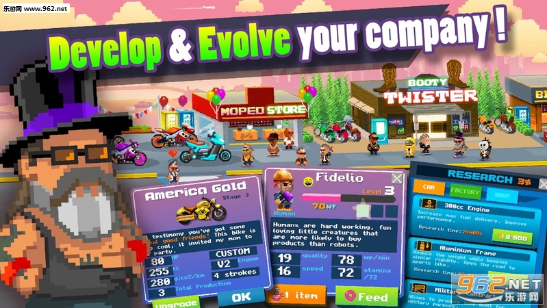 生产少见摩托车,弥补了独特的款式,让你的员工心情愉快,建造和升级你的店铺,请苛刻的客户,并在比赛中挑战你的朋友!