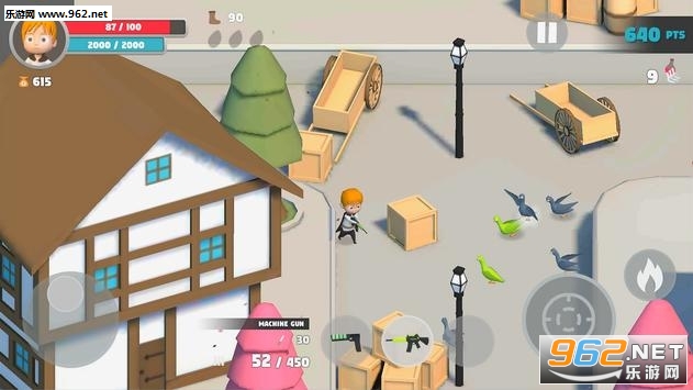 4、精致卡通的场景以及超清的画质,在不断地战斗中获得金币和资源道具,不断拾取提升你的攻击力轻松消灭鸽子哦。