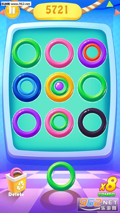 在横竖斜三个方向,玩家需要匹配3个及以上的同色圆环,不论大小。而且连续消除可以获得额外的分数噢!