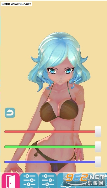 2、3D场景,默认包括海滩和家两种场景,服装造型主要有三套,当然玩家可以召唤出更多的场景和服装;