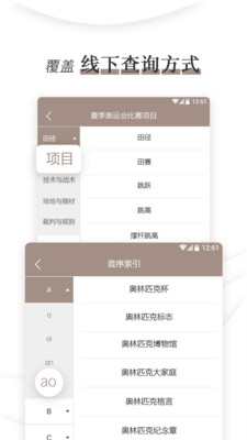 《奥林匹克小词典官方版》这是一款简单实用的奥运知识百科APP。用户可以了解奥运会的各个比赛项目,而且可以检索或者收藏自己感兴趣的内容,随时温故知新。软件操作简单易懂,感兴趣的用户可以下载体验!