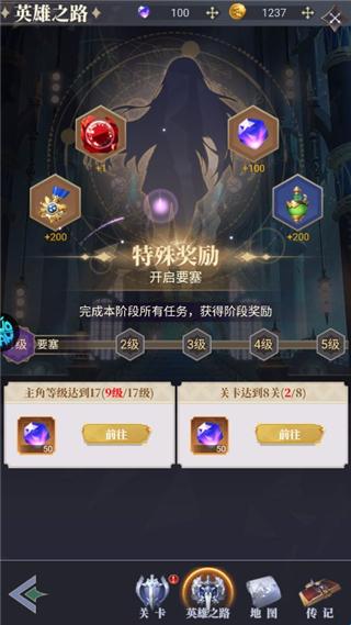 1、完成英雄之路,可获得丰富的游戏奖励。