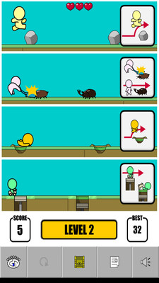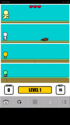 总体来说还是非常具有创意的一款游戏,游戏中玩家需要做到一心四用,这里有四个不同的人物,但是每个人物在碰到障碍物的时候所采取的方式是不同的,玩家的视野需要更加的开阔,同时你的操作也需要更加的即时,喜欢的亲们可以挑战下。