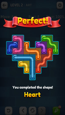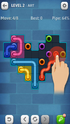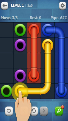 一款轻松好玩的益智连接管道闯关手游,玩家需要把不同关卡中颜色相同的管道连接起来,而且不能出现交叉的情况,这很考验玩家的逻辑性哦,赶紧下载试试吧!