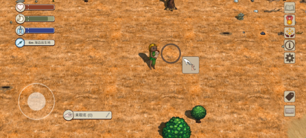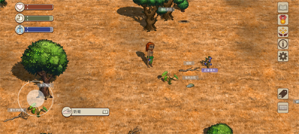 3、打开右下角标签功能,部分动植物的名称就会显示。名称的背景有灰色和紫色两种。灰色背景道具为一般的道具,可以捡起手持;紫色背景的道具交互后会产生新的道具,如有果实的果树、有蛋的鸟巢都是紫色背景可交互,交互完成后可以得到能食用的果实和蛋。