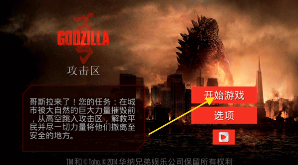 哥斯拉攻击区手机版是根据同名电影《哥斯拉》授权改编的一款动作冒险游戏,英文名为“Godzilla: Strike Zone”。该游戏主要讲述了一只狂暴的小怪兽经过核辐射的洗礼变成了一只大怪物,这只怪物给整座城市带来了灾难。因此,在游戏中玩家要加入一支执行危险任务的军事英雄部队,挑战大怪物哥斯拉。