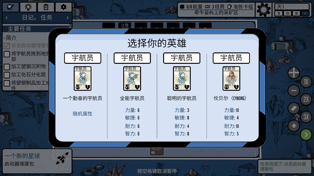 宇航员/定居者具有以下属性:力量、敏捷、耐力、智力;