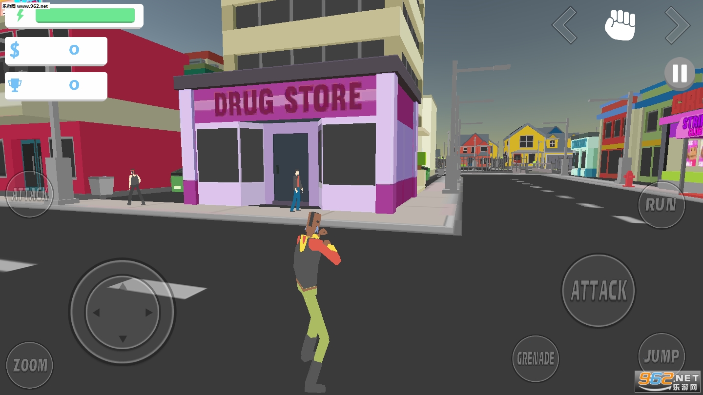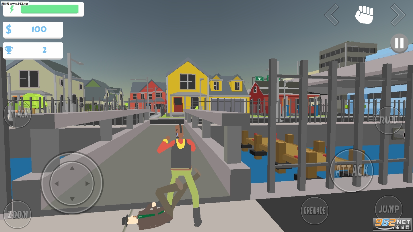 游戏画风我太爱了,就喜欢这种配色很舒服的简约风手游~如果捡到狙击枪就很爽了~一枪毙命!你就是这条街上最酷的仔!