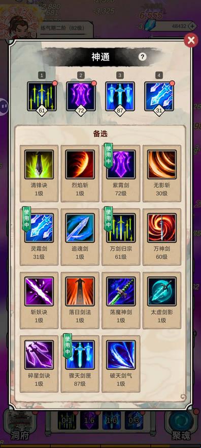 1、神通:前期用万剑归宗+万神剑输出这套打过第五重后资源全怼紫霄(71级解锁变大)+骤天