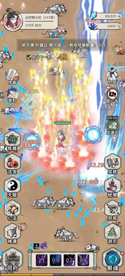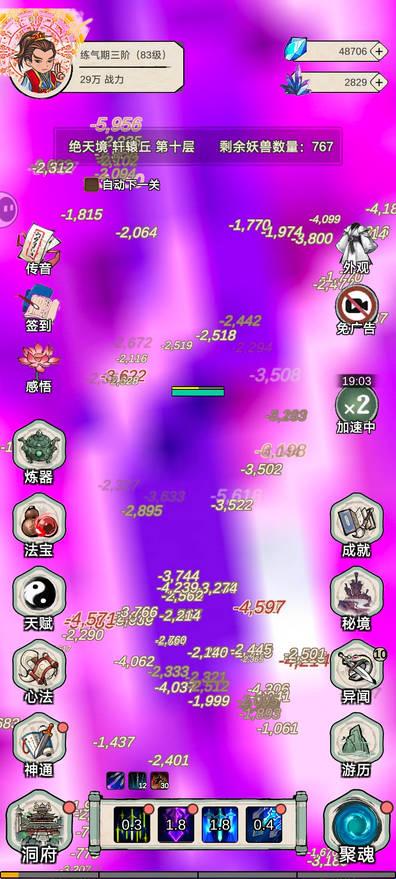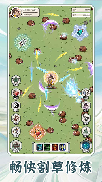 1、有创意的放置修仙游戏,不断学习好用的法术,和终极BOSS战斗。