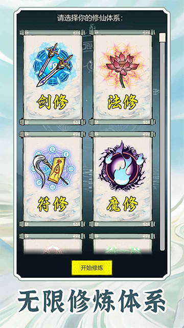 无限流修炼模拟器是一款修仙题材的角色扮演游戏,融合了多种不同的养成内容和玩法,打造了一个广阔无垠的修真世界,玩家通过修炼、战斗、完成任务等方式获取修为,这里境界突破的成功率受到多种因素影响,玩家需要合理安排资源和策略,确保突破成功。