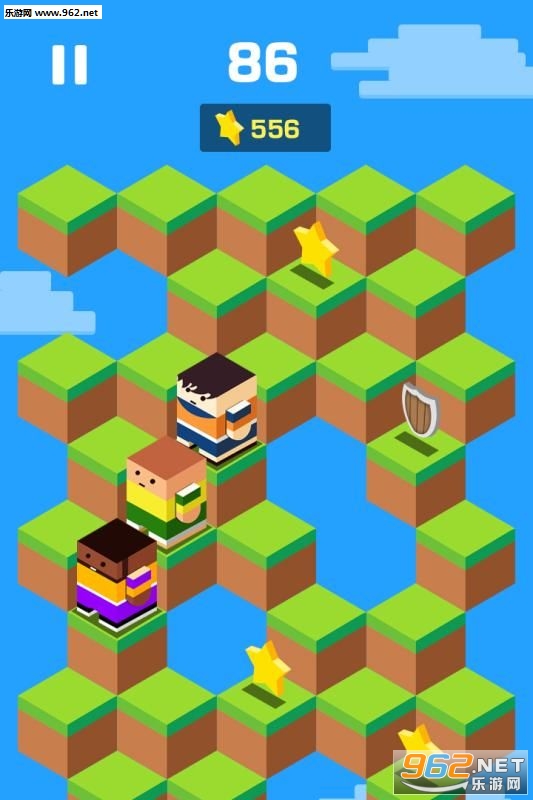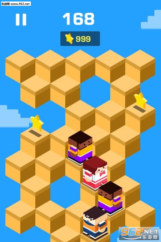 一款休闲的跳一跳类型的游戏,结伴同行采用了方块的风格特色,控制一个方块人跳跃,还可以在路上搜集小人一起结伴跳跃。