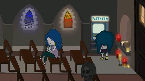 9、对话完成之后,查看墓园当中的东西之后返回教堂当中,和妈妈进行对话。返回肉店当中