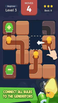 如果你要玩益智游戏,锻炼你的大脑,这款游戏适合你。通过合理移动方块,让灯泡接通电源,简单而上瘾的益智游戏玩法!