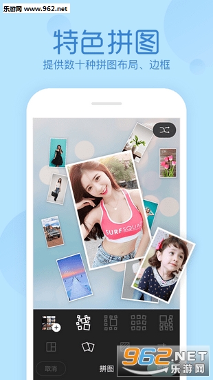 提供不同魔力的多种拍摄镜头,有分镜头、鱼眼镜头、nomo镜头、snapseed等;强力防抖、定时、触屏、设置焦点、静音;通过连接蓝牙支持自拍杆拍摄。