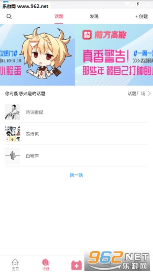 前方高能app是一款针对二次元认识打造的手机社交平台,这款软件目前全新上线哦,在前方高能app上用户可以查看各种动漫美图、经典动漫,还有其他的漫友发布的各种帖子可以查看,二次元风格浓浓的哦,感兴趣的快来下载吧!