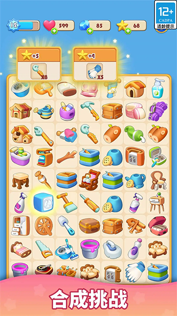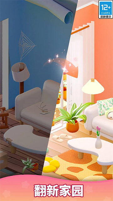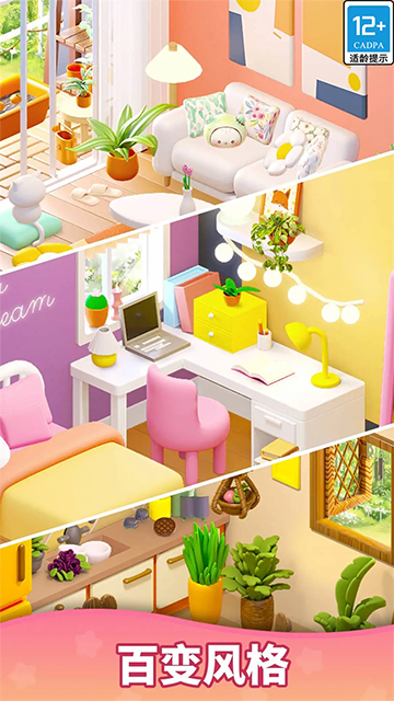 4、各种创意无限的合成玩法,通过消除方块、完成任务和解锁关卡,收集材料和道具,从而打造属于自己的理想家居。