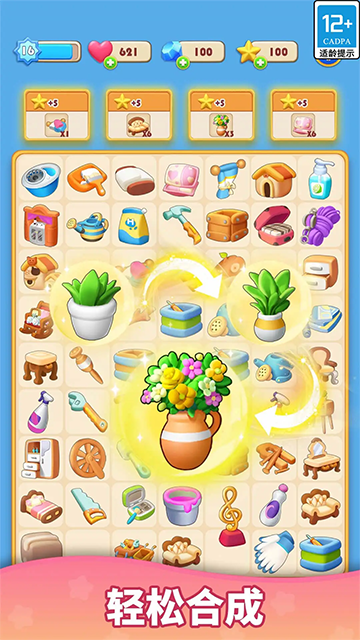 3、从经典的家具如沙发、床铺,到独具风格的装饰品如艺术画作、摆设花盆,每一件物品都可以通过玩家巧妙的合成技巧,组合出令人惊艳的效果。