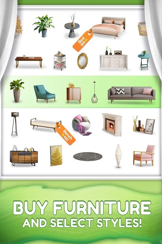 4、从比赛拼图中赚取金币,通过各种家具和装饰品定制客户的房间,使用您自己的设计风格,让他们的梦想家园成为现实。