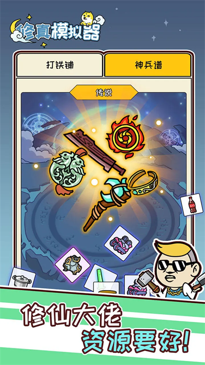 修真模拟器手游是一款有着诙谐搞笑风格的放置修仙手游,与先前发布的逍遥仙剑传的游戏流程相差无几,只在细节上略有差异,采用的是魔性画风,有趣又不俗套。玩家将扮演收破烂的小蔡吉,在垃圾仙人的引导下收最多的破烂,修最好的仙,结交道友、开拓地盘、合成神器、收服神兽……小蔡吉的目标是渡劫成仙,迎娶翠花,走上人生巅峰!在玩法内容上非常丰富,几乎有着所有修仙世界的所有设定,宗门选拔、拍卖交易、闯荡秘境、征服神兽、突破升级、神兵利器等,体系非常的完善。并且游戏中还有不少有趣的梗。