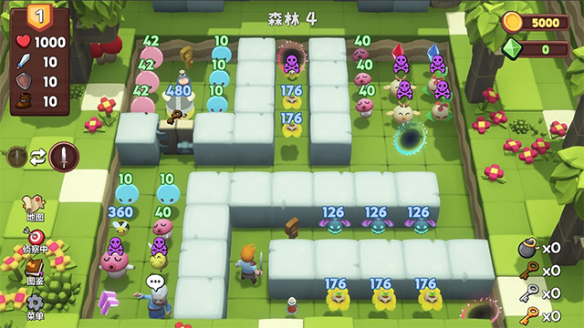 3、比方说选择了森林,就能进入森林迷宫。玩家扮演的勇者要一路收集宝石或道具。