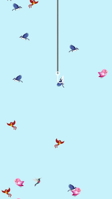 清新可爱的游戏画风,纯色的背景,颜色各异的小鸟点缀在上面挺好看的