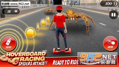 《滑板竞速:攻击蜘蛛》是一款悬浮滑板竞技类游戏,玩家站在滑板上,通过撞击金币获得奖励,同时需要躲避障碍物和可怕的蜘蛛,通过奖励在商店购买武器后利用武器杀死蜘蛛。小心那些可怕的蜘蛛,碰到了就会死!