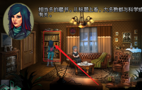 2、随后根据任务提示点击调查左侧书柜搜寻线索。