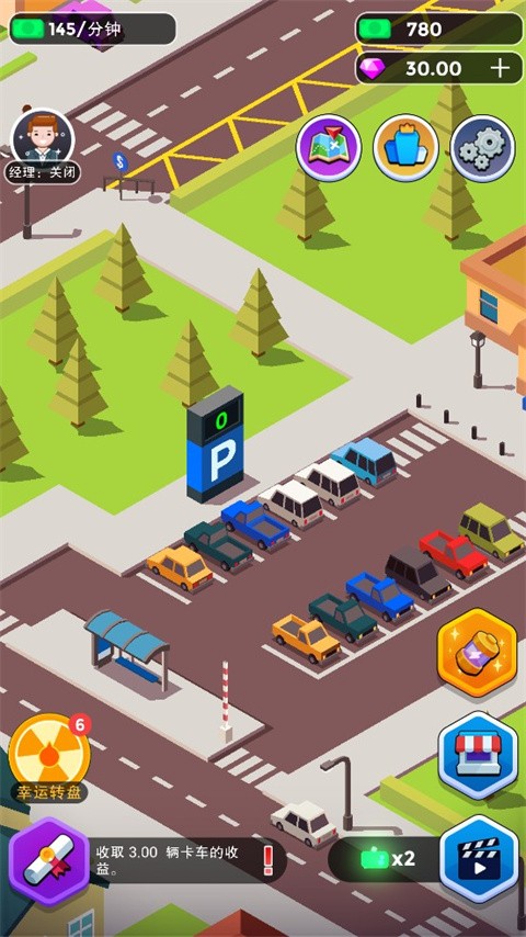 当停车场满了之后一定要记得扩大,不然会降低超市的收益哦!