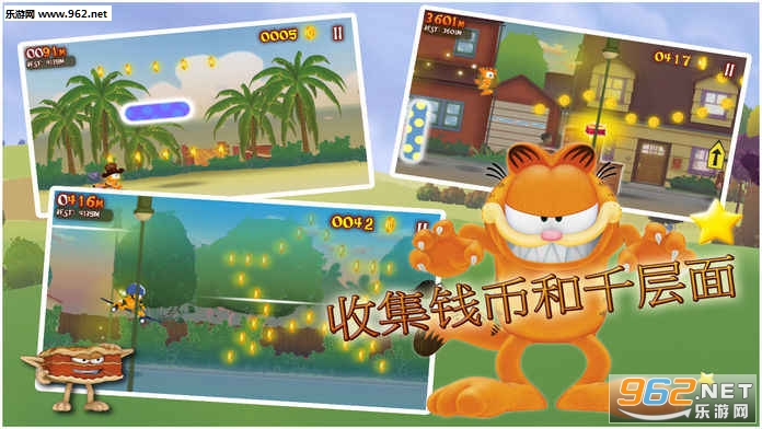游戏是一款更加倾向于怀旧情怀向的游戏,众所周知,加菲猫这个经典的卡通角色陪伴了太多人的童年,不仅仅是它可爱的外形,更是因为他懒散的性格引起了更多人的共鸣,为了回味这位经典的卡通角色,本作的画面还原度非常的高,同时简单的横版跑酷的玩法也加深了指尖操作的快感,喜欢此类型游戏的亲们赶紧下载吧。