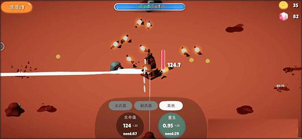 2、获得的金币将主武器伤害提升到40.7,速度提升到12.25,范围提升到6.55。