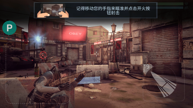 5、记得移动您的手指来瞄准并点击开火按钮射击。