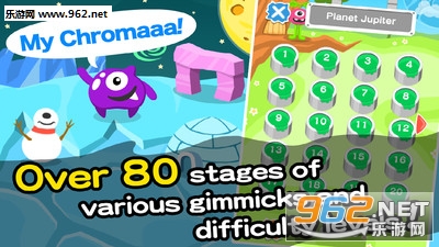 当然了,这款游戏最吸引人的其实不是玩法,这类玩法还是很多滴。最逗的是它的画风和音乐。从游戏ICON开始就展现了无处不卖萌的特色,那个长相奇特骨骼惊奇的主角也不知道是哪个星球来的叫兽,再加上各种糖果色的配色,简直是为3岁以下儿童量身定做的好么?而整个游戏的风格也是艳丽的明快的,每个地图都有不同的颜色主题。而游戏音乐更是逗乐,欢快的旋律以及时不时出现的处理过的人声结合在一起,几乎可以和洗脑神曲拼一下了。而且特效音也是那种Q到没有男朋友的感脚。小编觉得这游戏应该让有颗少女情怀的妹纸去玩,或者是熊孩纸们……