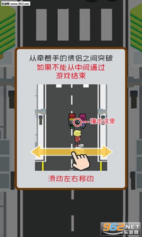 奔跑起来展开反击吧,游戏中玩家需要操作人物左右晃动奔跑,将沿途的每一对情侣的双手扯开,记住只能从双手中间冲过哦,撞到人则游戏结束!这款游戏简直就是消磨时间的利器非常容易上瘾的简单玩法,开启的你单身狗反击战,获取的金币还能解锁更多酷炫的单身贵族!