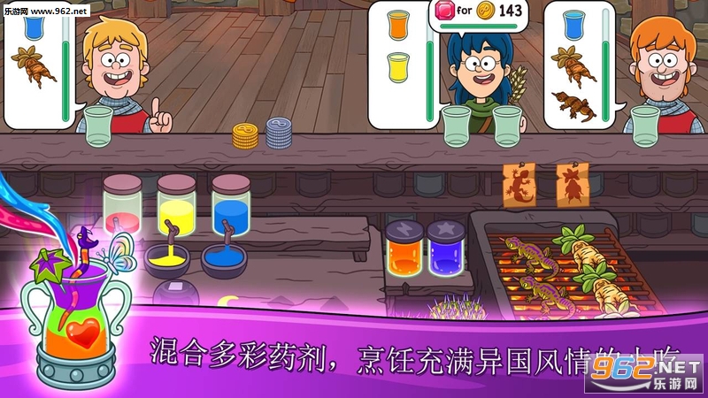《来杯毒药 Potion Punch》是由 Monstronauts Inc. 提供的一款模拟经营类游戏。不同于其他经营类游戏的是,你将服务于整个“艾泽拉斯大陆”的英雄,人类,精灵,矮人,兽人,地精都可能出现在你的小店里,好好侍奉他们,不然他们会发火哦~